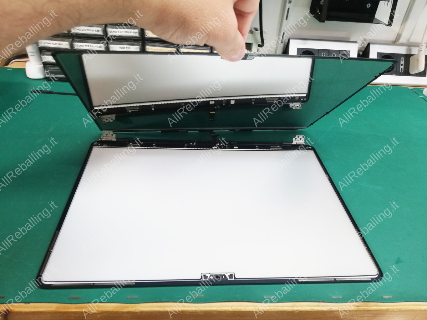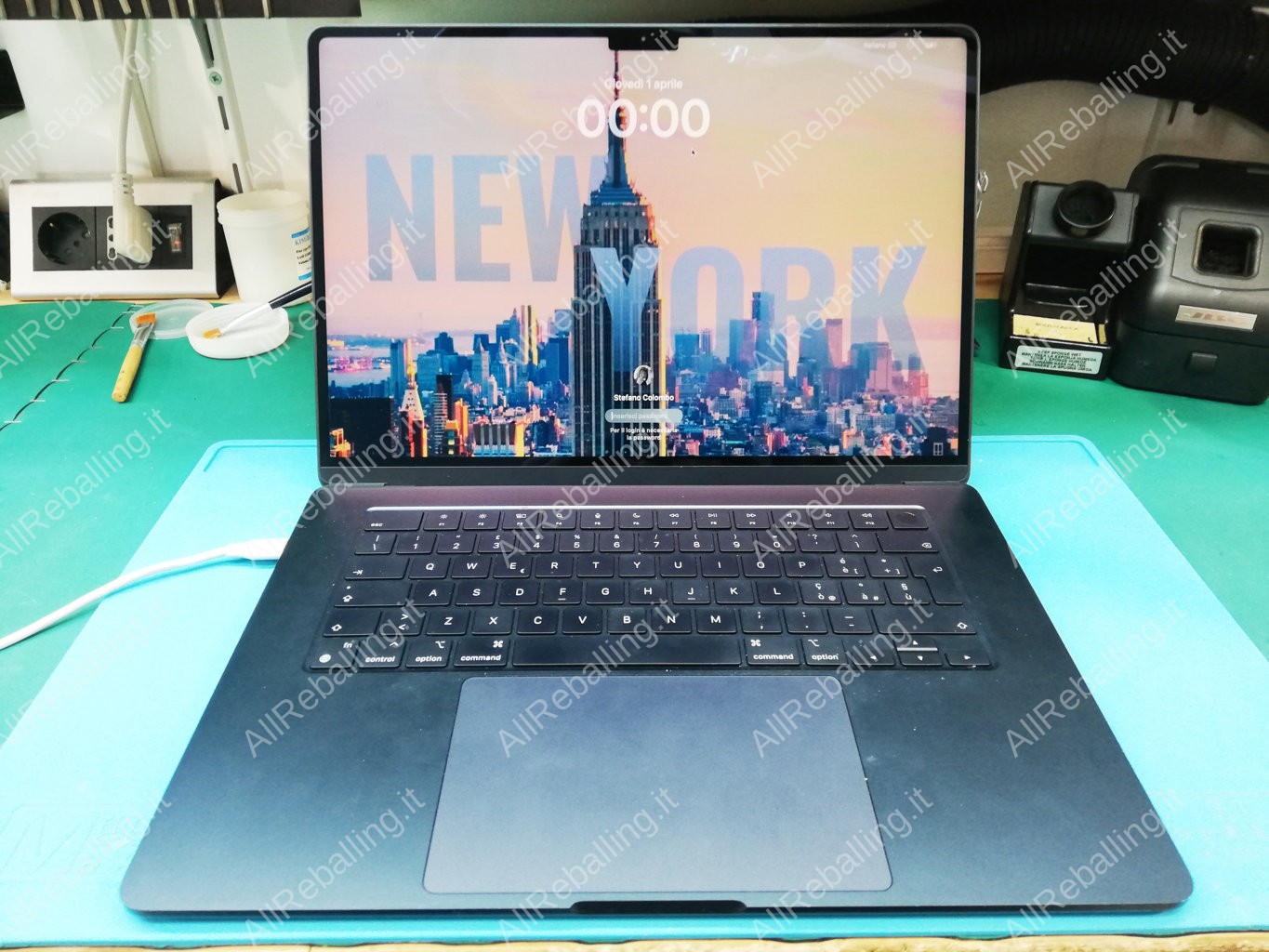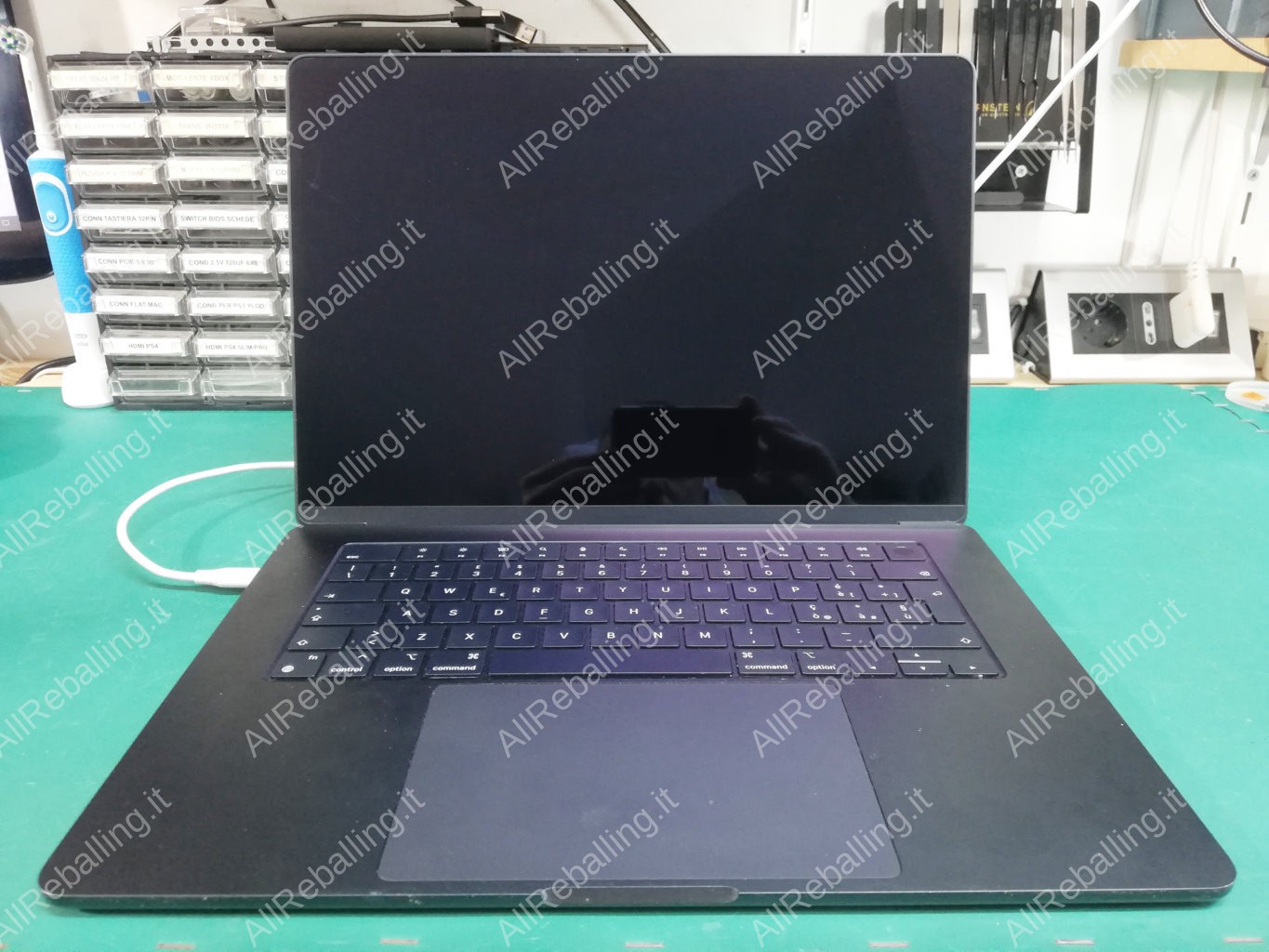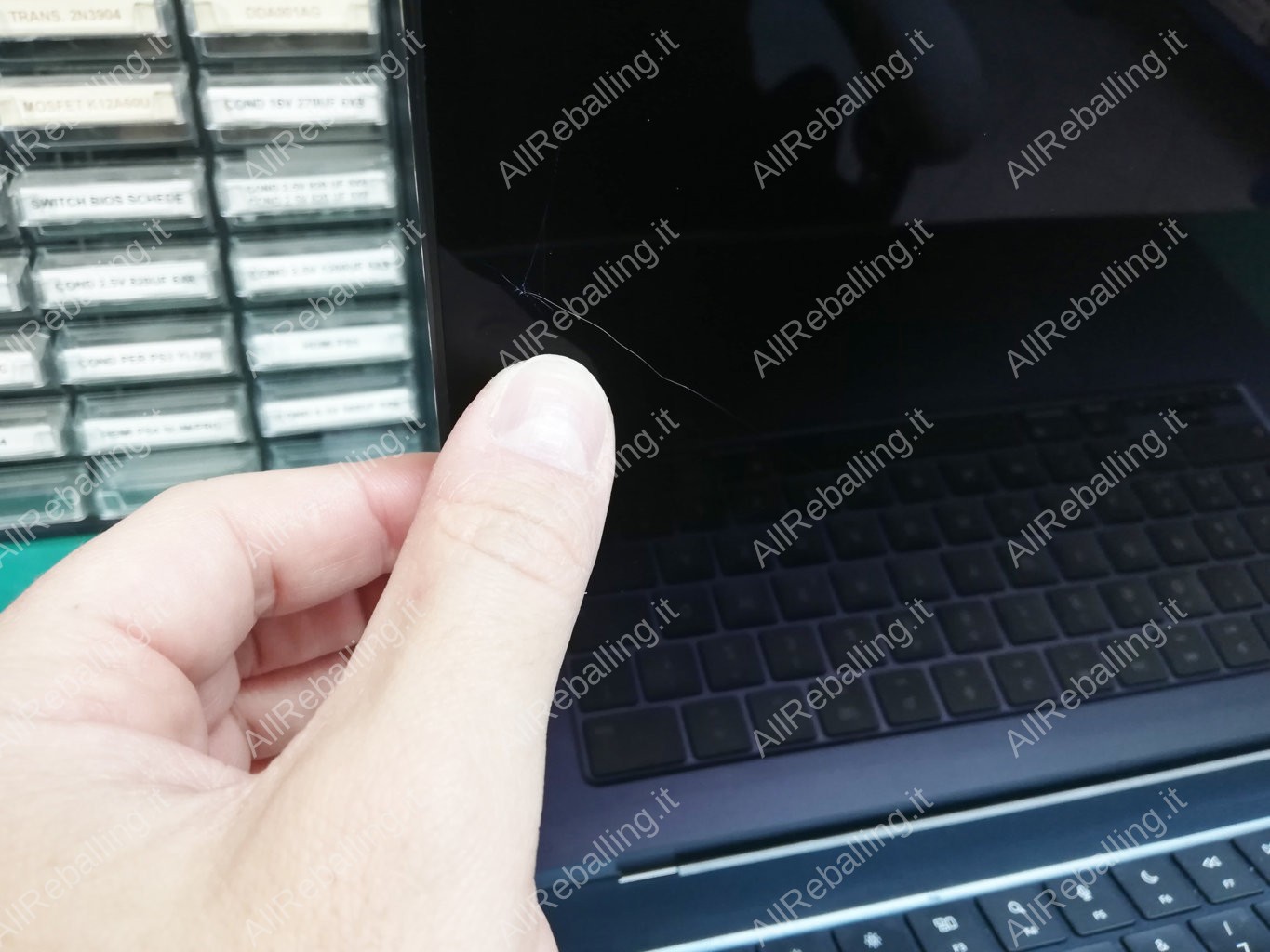 Macbook Air 15 M2 Schermo Nero. AllReballing in questo articolo vi mostra la procedura di riparazione di un MacBook Air 15″ M2 anno 2023 con il Display rotto. Il cliente nel chiudere il Display si dimentica una matita sulla tastiera e quest’ultima va a danneggiare il Display creando una crepa e successivamente Il Macbook Air 15 mostra uno schermo completamente nero.