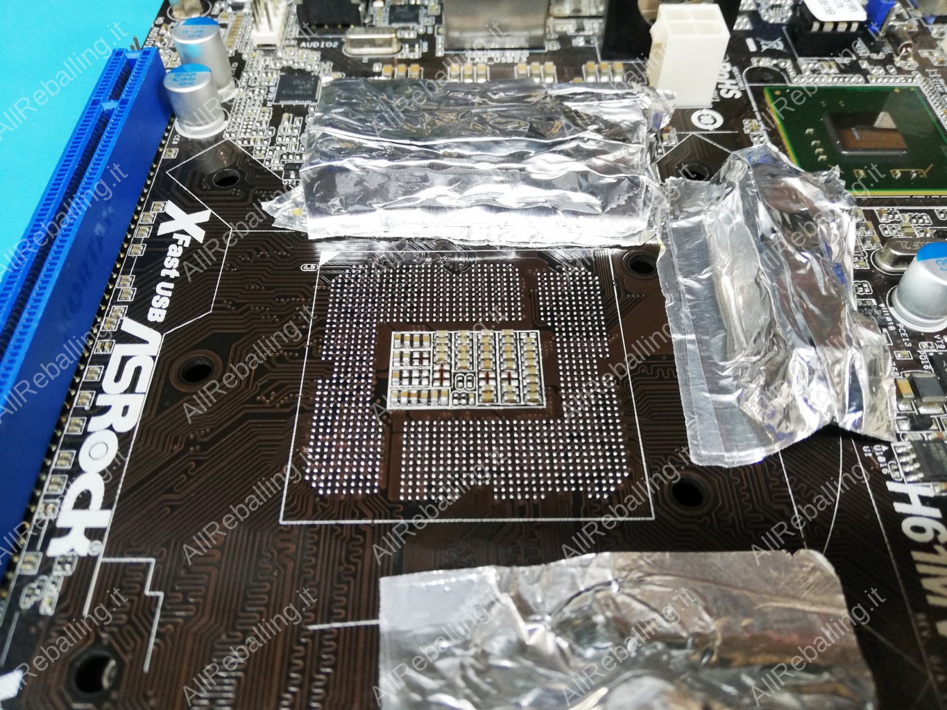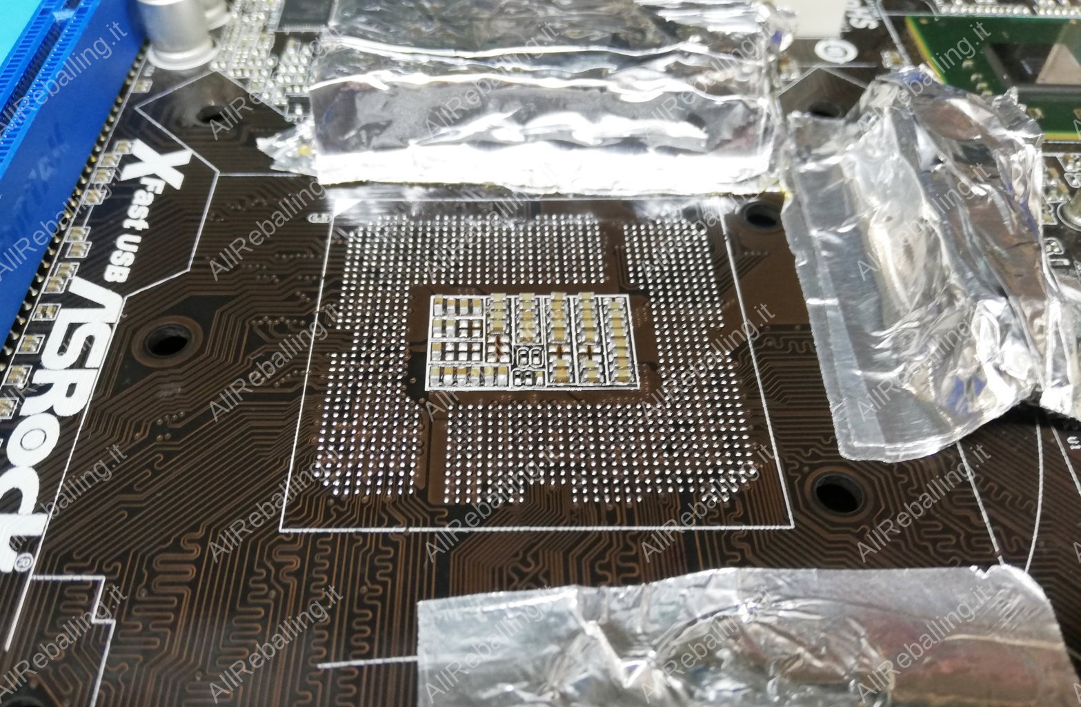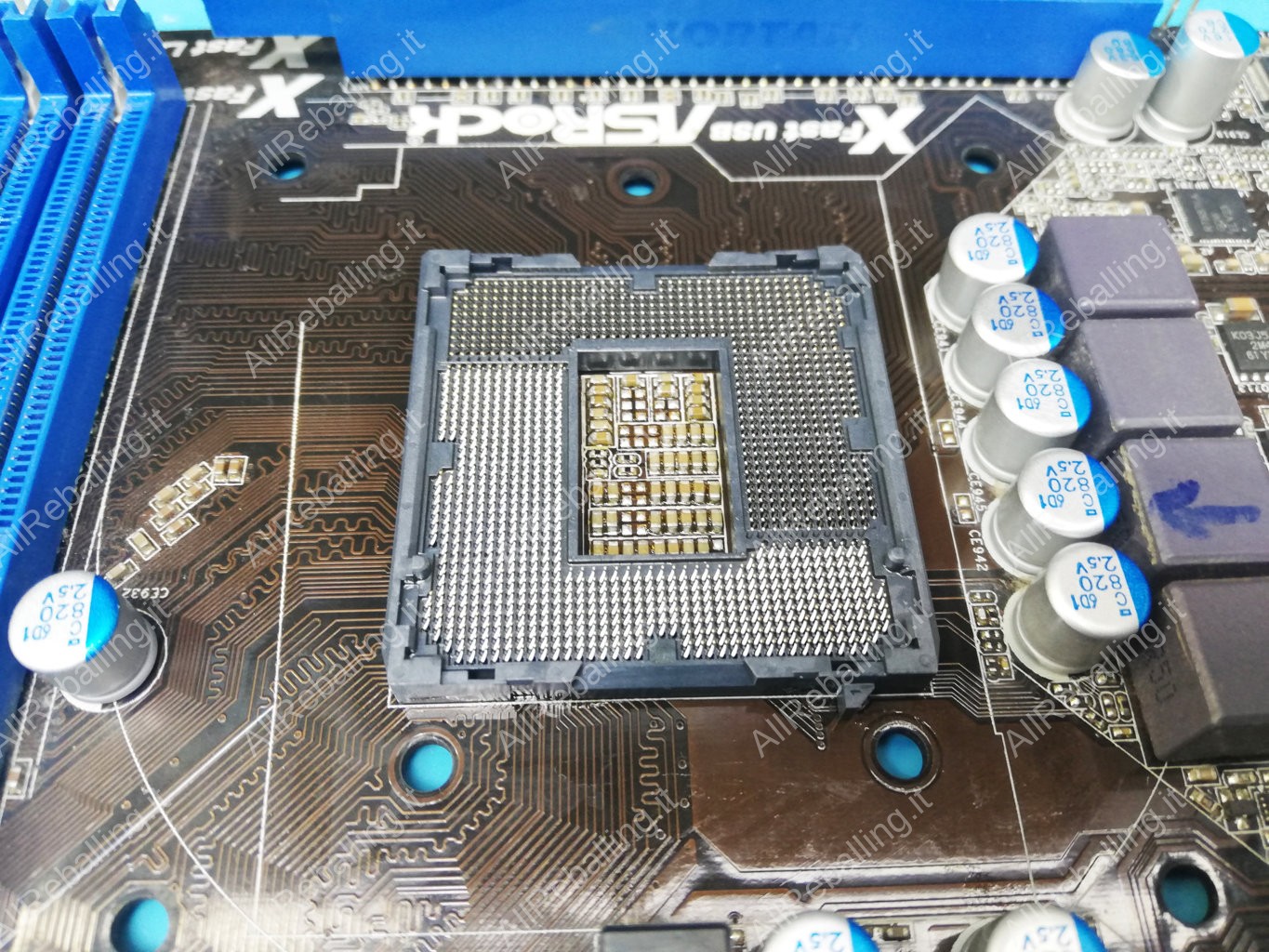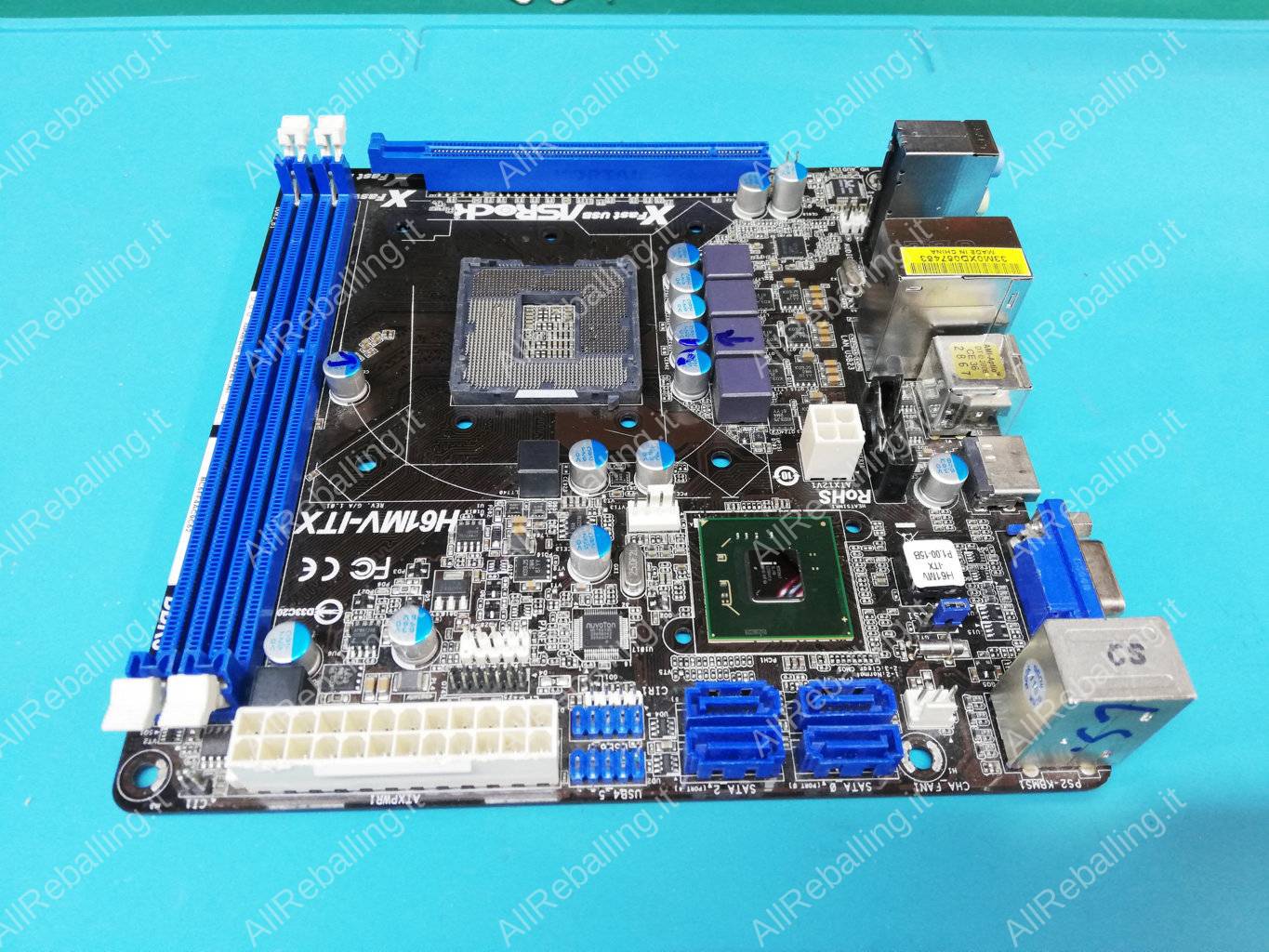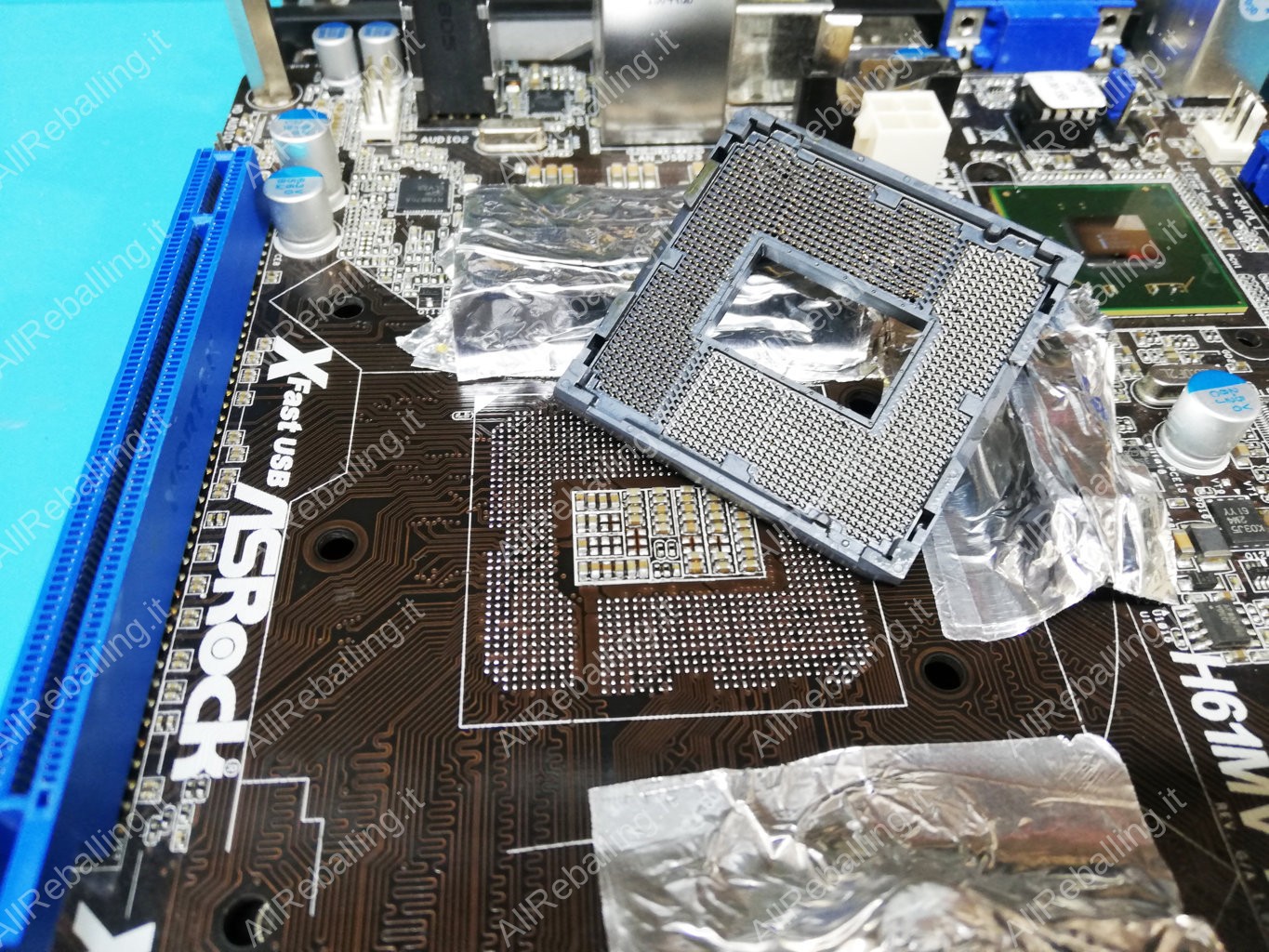 Sostituzione Socket LGA 1155. AllReballing in questo articolo vi mostra la riparazione con il metodo REBALLING di una Scheda Madre ITX H61MV-ITX Rev. GA 1.0 della ASRock munita di Socket Intel LGA 1155, dove il cliente durante l’installazione di una nuova CPU ha rovinato accidentalmente e irreparabilmente vari pin del Socket Intel LGA 1155, rendendo la Scheda Madre inutilizzabile. In questa riparazione, si effettua il Reballing con sostituzione del Socket Intel LGA 1155 con uno nuovo.